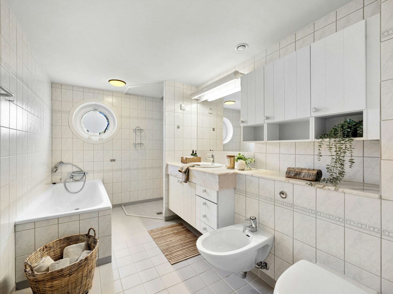 • Совмещённая ванная: все стены – влагостойкая минеральная штукатурка с матовым финишем.